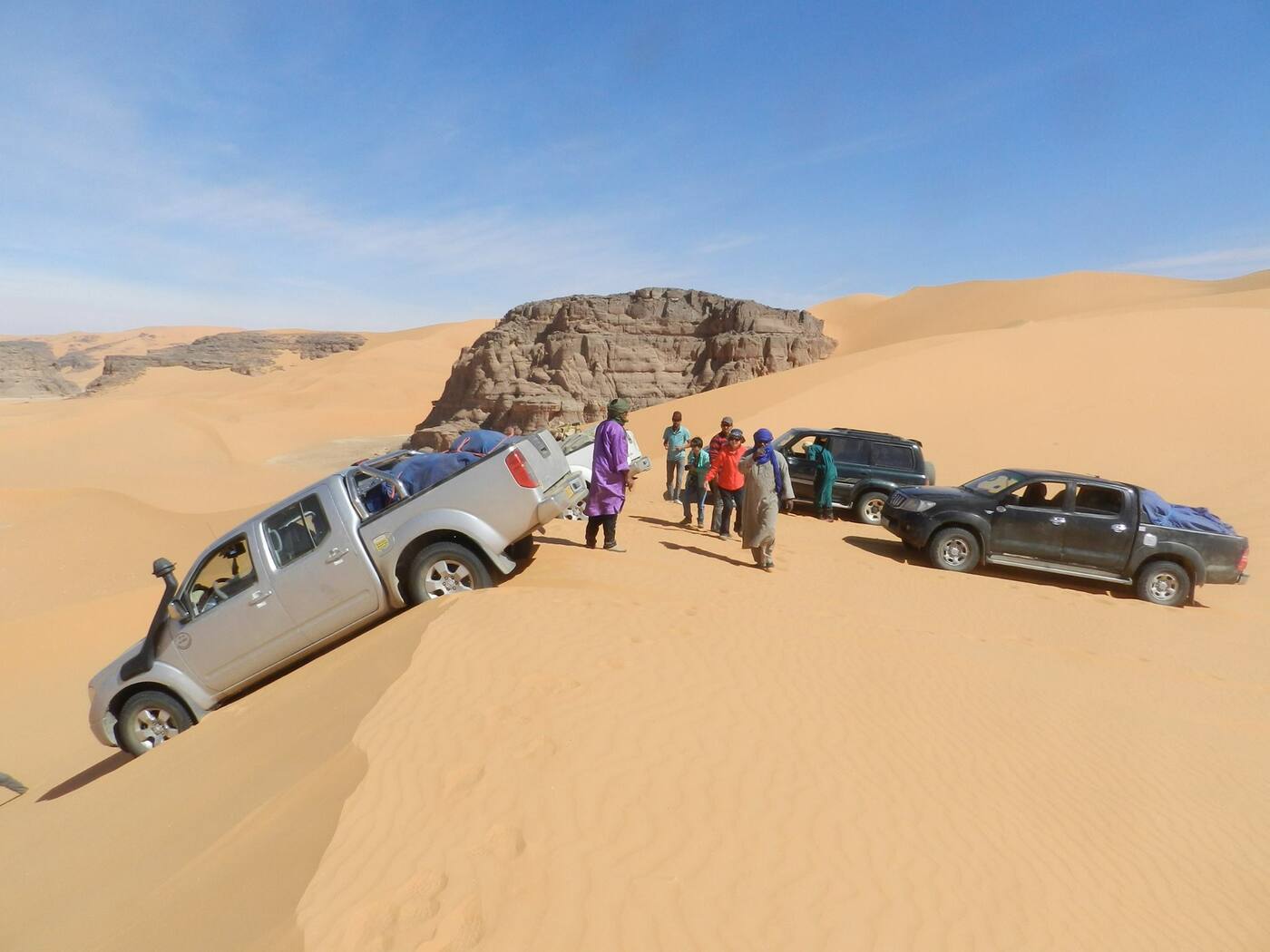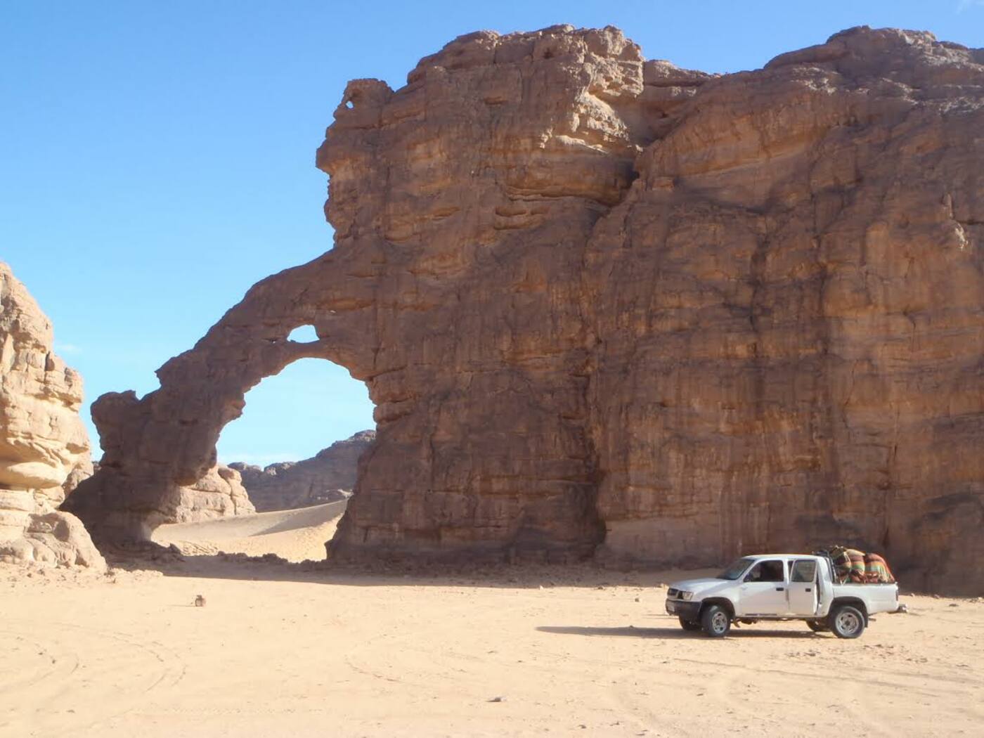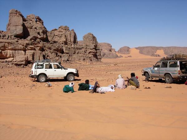 Seejärel sõidame 4x4 maasturitega kõrbesse Tassili N'Ajjeri rahvusparki. Suundume esmalt kagusse Tadrarti massiivi juurde, asustatud alates neoliitikumist. Selle orud, mida kunagi külastasid karjased, kannavad nende kohaloleku jälgi. Vaid mõne kilomeetri kaugusel asfalteeritud teest, muundub maastik justkui kuumaastikuks, mis lummab kogenud maadeavastajaid ja jätab uustulnukad sõnatuks. Täna avastame El Beridji piirkonda, mis on tuntud oma suurte kanjonite poolest, mida piiravad tumedad liivakivikaljud, kus saame imetleda esimesi kivigraveeringuid.