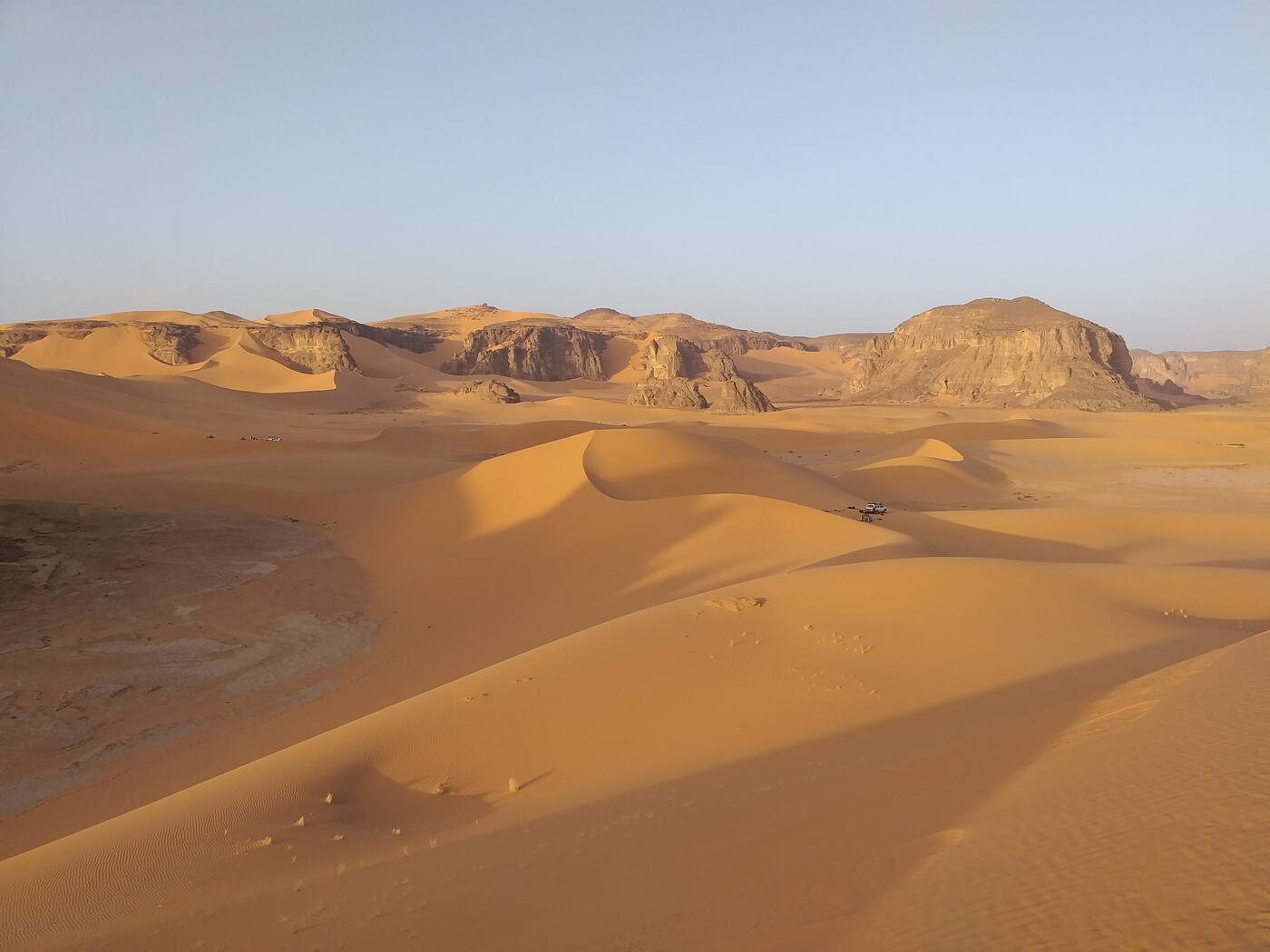 Nagu eelmistelgi hommikutel, alustame lühikese jalutuskäiguga, kogedes kõrbe vaikust ja võimsust. Järgmisena sõidame Oued In Djareni, mis areneb majesteetlikuks