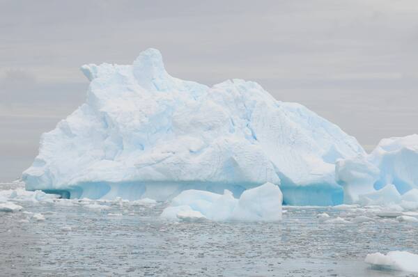 Scotia merel Antarktika poolsaare suunas liikudes võime märgata lauakujulise tipuga jäämägesid, mis võivad olla hiigelsuured – näiteks 70 kilomeetrit pikad ja 48 kilomeetrit laiad. Hämaruses võib nende jääpind lausa maana tunduda. Kui laev ületab Antarktika konvergentsi (polaarfrondi), mis on kaardil tähistatud lainelise joonega 50. ja 60. kraadi lõunalaiuse vahel, oleme ületanud bioloogilise piiri, mis eraldab Antarktikat ülejäänud maakerast. Mõnikord märgitakse seda piirkonda udude vööna, kus troopikast tulnud hoovused kohtavad külmi hoovuseid Antarktikast.