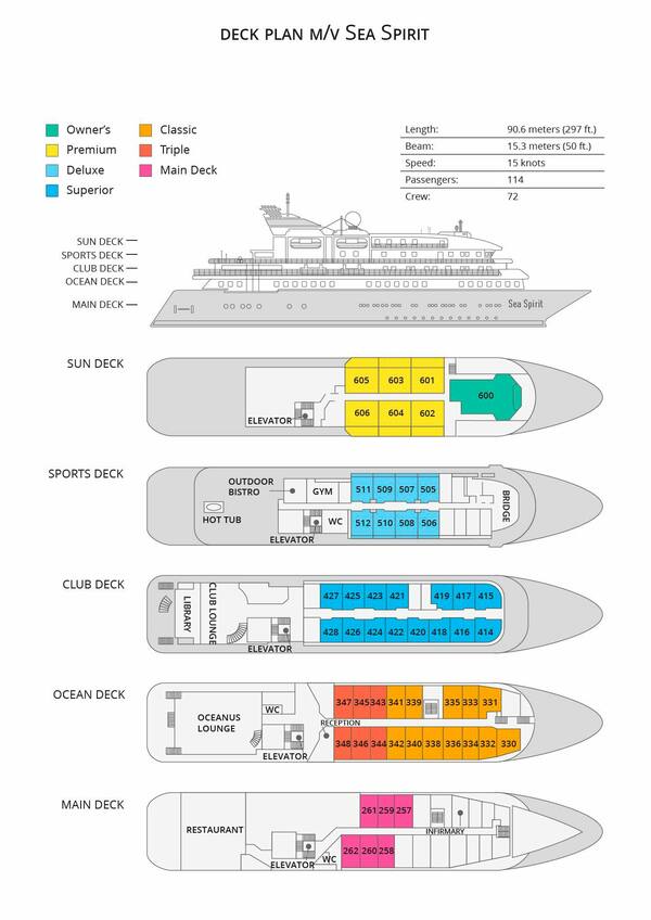 M/V Sea Spirit on justkui rändlind, kes järgib päikese liikumist. Suvel seilab põhja poole ning talvel kaugele lõunasse. Laev on alati valmis uuteks spontaanseteks avastusteks ning suudab kiiresti manööverdada kitsastes fjordides ning lahesoppides.