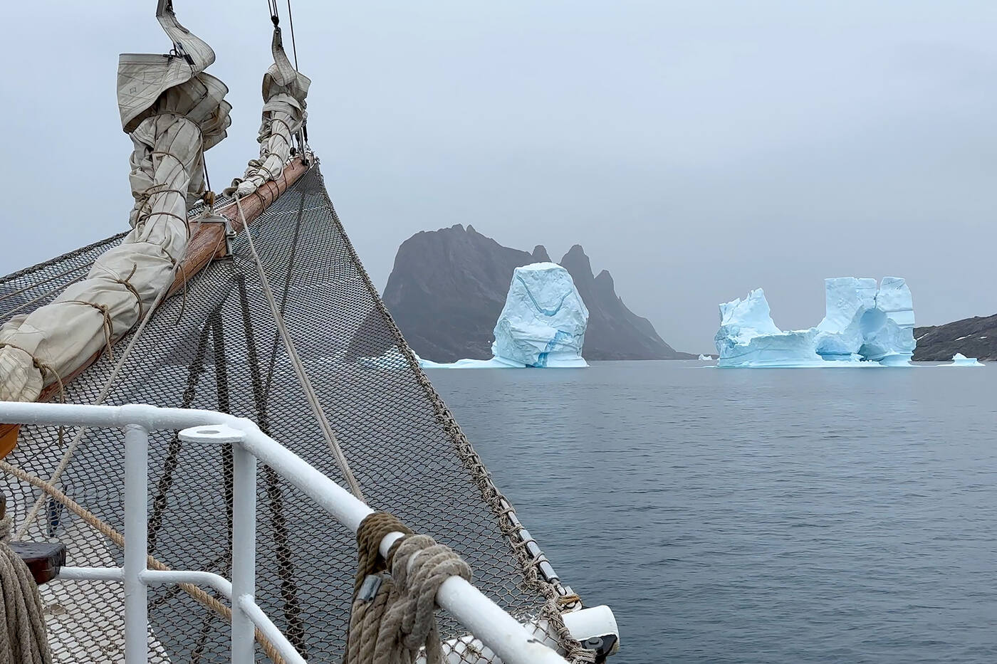 Külastame Danmarki saart, kus on ligi 200 aastat tagasi mahajäetud inuitide asula varemed. Ümmarrgune kiviring annab tunnistust suvemaja asukohast, talvised elamud asusid väikese neeme lähistel. Asulas on hästi säilinud majade sissepääsud, karukindlad lihahoidlad ja hauad. Pärastlõunal purjetame Milne Land idapoolsel küljel keset laiali pillutatud jäämägesid.