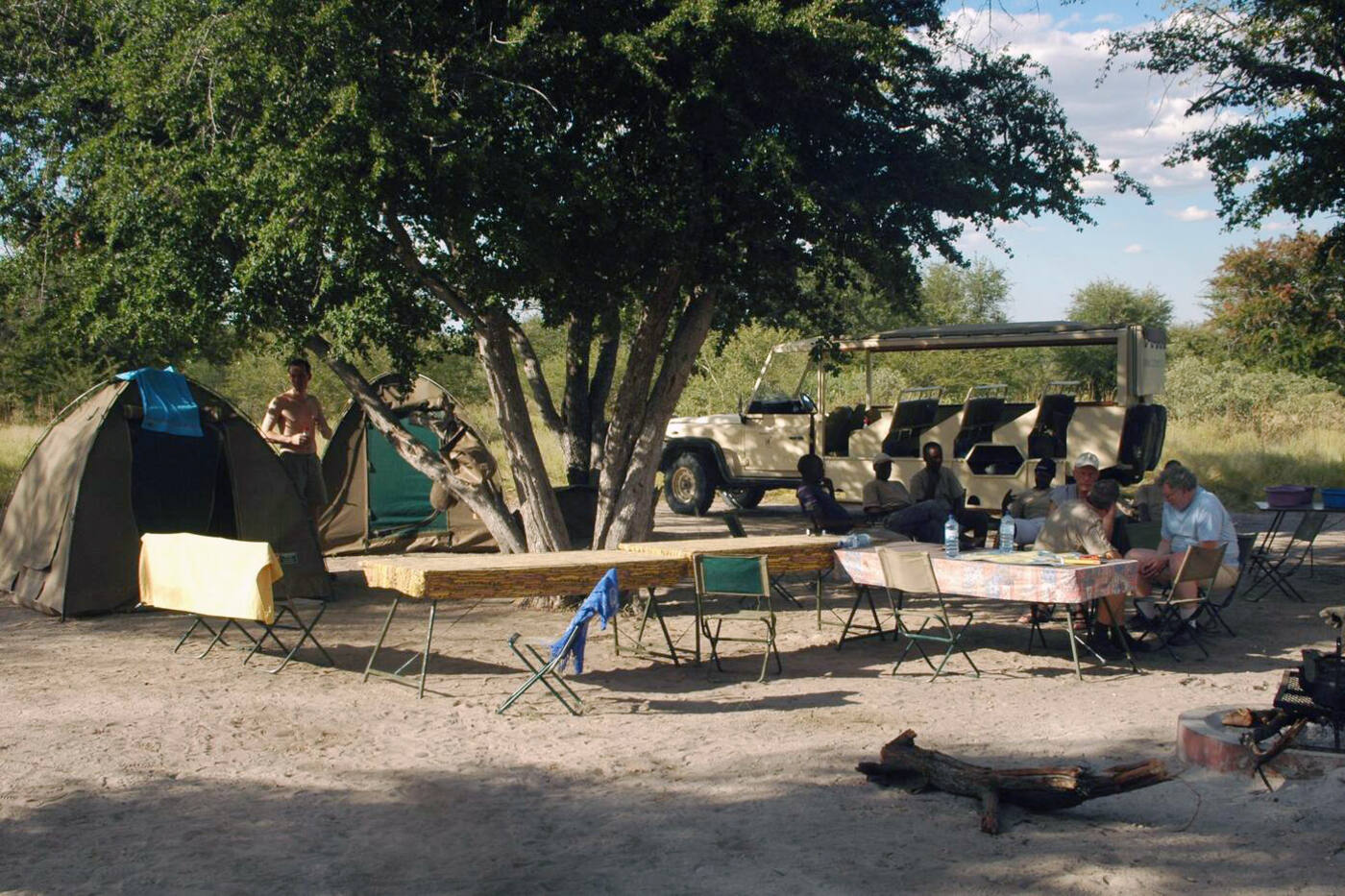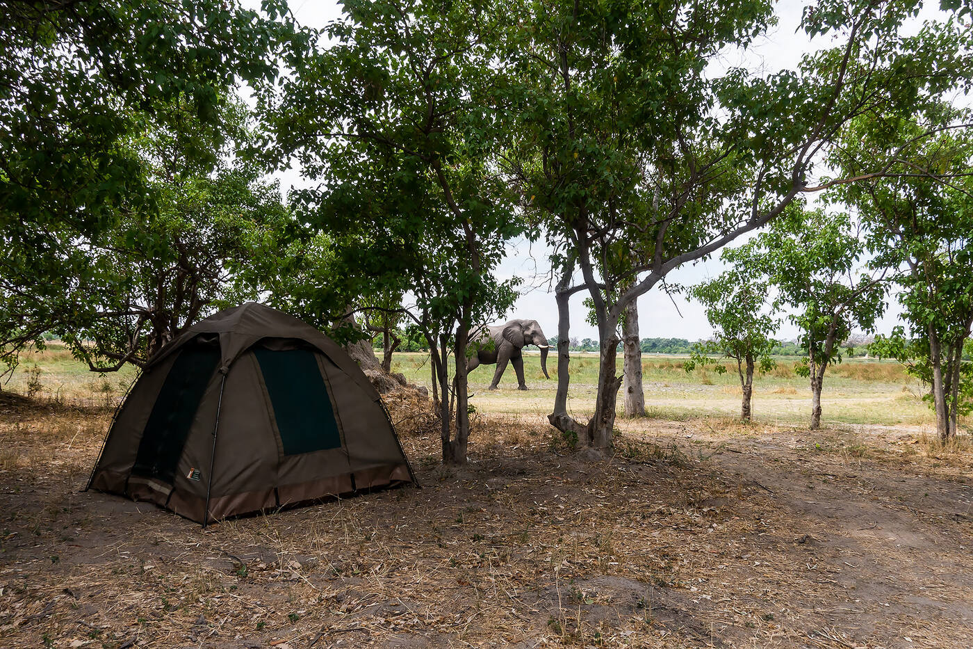 Majutus vaid meie grupile reserveeritud telklaagris, kuhu kogenud meeskonnaliikmed seavad üles kogu laagriks vajaliku – telgid (kahesed), pesemistelgi, tualett-telgi, lõkkeaseme ning söögilauad. Kui oleme laagrisse jõudnud, siis alustab meiega kaasas reisiv kokk ettevalmistusi õhtusöögiks. Selleks ajaks, kui pesemas on käidud ja magamisasemed korda tehtud, on ka soe õhtusöök valmis. Lõkkeaseme ümber päeval kogetud muljeid vahetades võib juhtuda, et suunates prožektorikiire ümbritsevasse pimedusse, võivad sealt vastu helkida mõne savannielaniku silmad. Aga karta pole vaja – kui lõke põleb, hoitakse eemale. Pärast õhtusööki on põhjalik koristus – kogu söödav kraam suletakse konteineritesse ja toidujäätmed põletatakse, nii ei meelitata savannielanikke laagriplatsile. Aga seda juhtub ikka, et öösel on läbi telgipresendi kuulda, kuidas vaikselt läheduses hiilitakse...