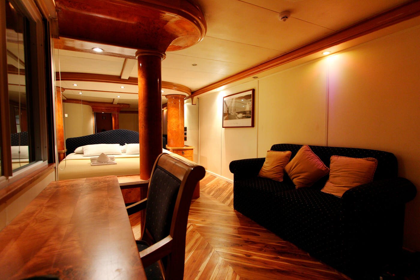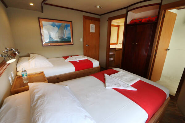 Katamaraanil on 8 kena ja ruumikat kaheinimese kajutit. Kõikidel kajutitel on aken mere poole. Voodid on madalad ja saab kohaldada nii kahe- kui ka üheinimese voodiks. Igas kajutis on oma vannituba, soe vesi, riidekapp, õhukonditsioneer.