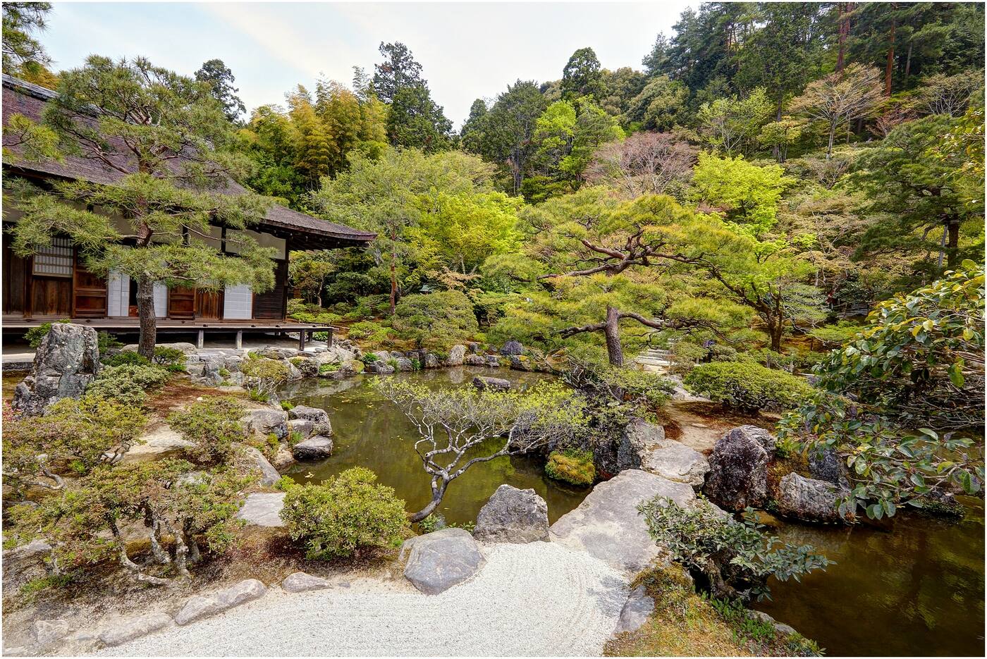 Pärast hommikusööki algab päev Kyotos Ginkaku-ji, ehk Hõbedase templi külastusega. Kyoto Idamägedes asuv Hõbetempel ehk Ginkakuji on loodusega justkui üheks kasvanud. Paviljon on ehitatud 15. sajandil šogun Ashikaga Yoshimasa poolt osana suuremast villast ning ühendab Hiina ja tol ajal arenenud Jaapani Muromachi arhitektuurielemente. Paviljoni ja seda ümbritseva jalutusaia rajaja vanaisa oli kord ehitanud Kyoto Kuldtempli. Kui Kuldtempel on kaetud kuldlehtedega, siis Hõbetemplit oli algselt plaanitud katta hõbedaga. Uhkeldavat plaani ei teostatud kunagi. Sellest rajatisest sai tagasihoidlik puidust tempel, mis on jaapanipärase vaoshoituse ja stiilipuhtuse etaloniks. Mööda pehmet rohetavat aeda jalutades on silmaga hoomatav vaid piiratud arv vorme – strateegiliselt paigutatud kivid, väikesed kivist sillad, liivakünkad (Kogetsudai ehk kuuvaateplatvorm), Hõbetempel ise, samblad, teravaservalised mustrid riisutud valgel liival – vormid reastuvad ümber vastavalt sellele, mis punktist neid vaadelda. Pärast templi külastust jalutame filosoofi jalgrajal. Kirsisõite õitsemise ajal on see lihtne kivist rajakene kanali kaldal saanud paljude lemmikuks, kus hetke kauniduse, elu kaduvuse ja taassünni üle mõtiskleda.