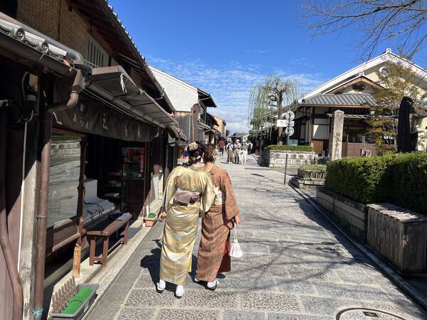 Seejärel jalutame Gioni kvartalis, mis on Kyoto üks peamisi geišade piirkondi. Jalutades mööda prillikivina läikima löödud tänavakesi, imetledes lilleõite ja pajupuude maailma ajaloolisi linnamajakesi ja hubaseid teetubasid, tunnetame, kuidas meie asisesse maailma tuuakse poeesia ja salapära võlu.