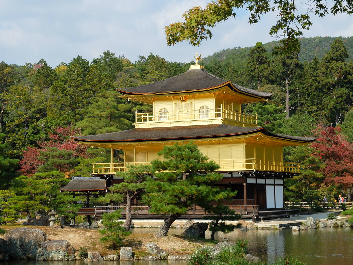 Edasi suundume Kinkaku-ji (tuntud ka kui Kuldne tempel) juurde. Kuldne tempel hõljub häirimatult justkui lootoslill kauni Kyokochi tiigi kohal. Hoone peegeldus tiigil on hingemattev vaatamisväärsus isegi neile, kes on seal sagedased külalised. Suurustleva Kuldse paviljoni rajaja šogun Ashikaga Yoshimitsu (1358-1408) palus maise elu lõpus enda hinge lunastamiseks muuta oma villa zen-budistlikuks templiks. Kyoto enim jäädvustatud paik on püsinud jaapanlaste hiilgeaegade võrdkujuna ning mõjukaima turismimagnetina üle 500 aasta. Kahjuks üks õnnetu meeltesegaduses munk hävitas templi süütamise läbi 1950. aastal. Hoone ehitati uuesti üles paar aastat hiljem originaali täpse koopiana, milleks kasutati muuhulgas 100 000 22-kraadist kullalehte. Jalutuskäik templi lopsakates aedades võimaldab kogeda templi majesteetlikku säravat ilu erinevatest vaatenurkadest. Ümbritsevad mäed laenavad oma suursugust ilu aiale, muutes selle hoomamatult avaraks.