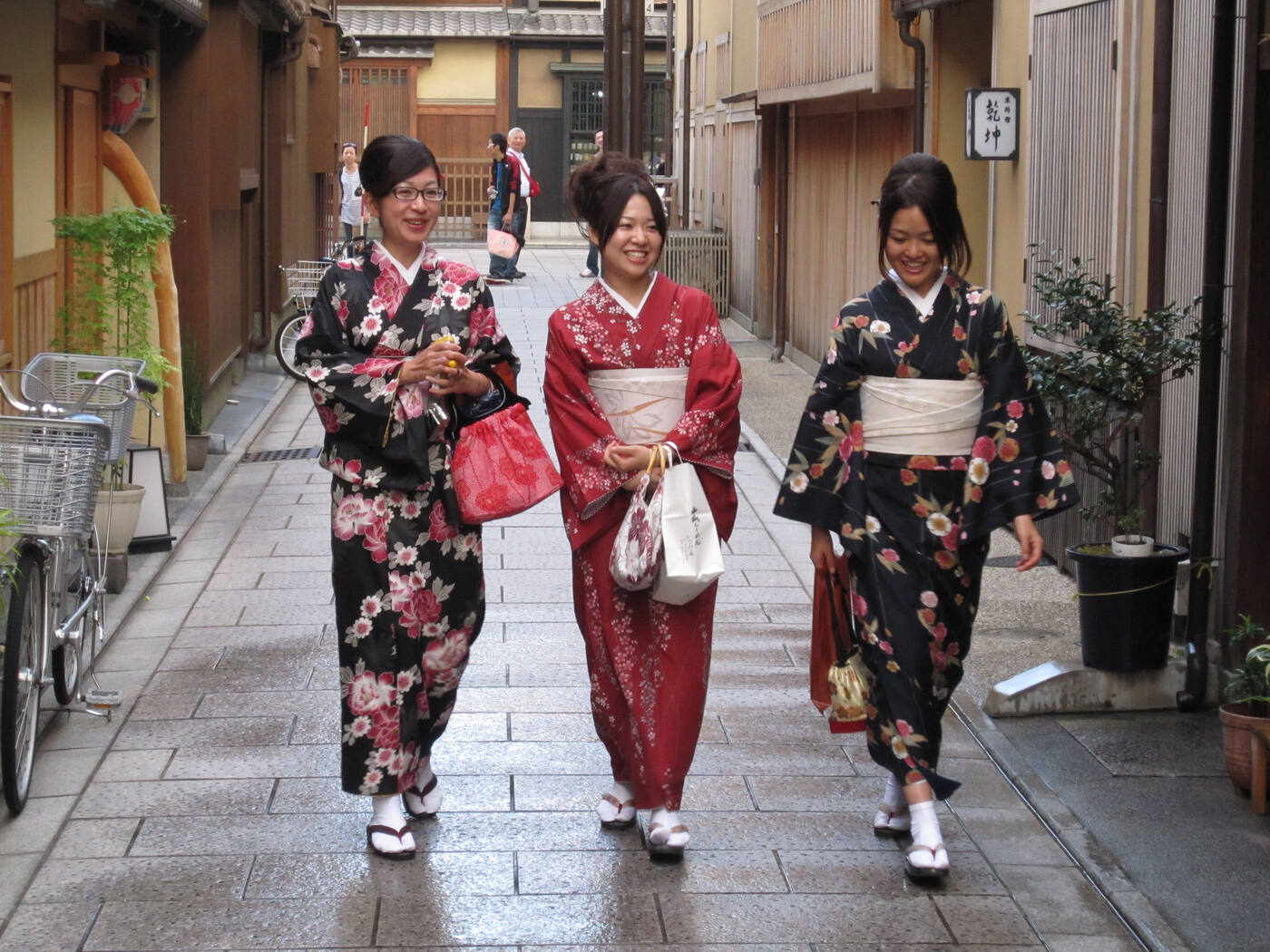 Seejärel jalutame Gioni kvartalis, mis on Kyoto üks peamisi geišade piirkondi. Jalutades mööda prillikivina läikima löödud tänavakesi, imetledes lilleõite ja pajupuude maailma ajaloolisi linnamajakesi ja hubaseid teetubasid, tunnetame, kuidas meie asisesse maailma tuuakse poeesia ja salapära võlu.
