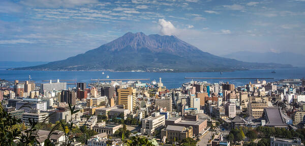 Ühelgi teisel Jaapani linnal pole nii rabavat asupaika kui Kagoshimal, mis vaatab üle laia lahe aktiivse Sakurajima vulkaani mõtlikku siluetti. Vahetevahel puistab vulkaan linna üle halli tuhaga. See subtroopiline linn oli kaugel kunagisest pealinnast Edost ning nautis suhtelist iseseisvust. Satsuma feodaalala keskust valitses Kagoshima Shimazu klann üle 800 aasta, tuues siia Hiina ja Kagu-Aasia kultuuri. Selle pärand on tänapäevalgi nähtav.
