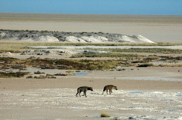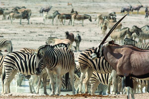 Etosha org. Pikka aega tagasi oli Etosha nõgu tohutu suure järve sängiks; tänapäevaks on sellest säilinud sädelev, hõbejas-roheline soolaväli, mis laiub umbes 5000 ruutkilomeetril. Etosha on Etosha nõo rahvuspargi kaitse all. Ümbritsevad savannitasandikud ja metsamaad pakuvad kaitset suurtele elevandikarjadele. Kuivaperioodil on nõos väga vähe elu, välja arvatud vetikad, mis nõole iseloomuliku värvi annavad ning rändlinnud, kes kasutavad seda lühikesteks peatusteks; ent tugevate vihmasadudega muutub see madalaks järveks, kus pesitsevad flamingod, pelikanid sumades toitu otsivad ning rida imetajaliike - nende seas leopardid, lõvid, valged ninasarvikud, jahikoerad ja antiloobid - tuleb janu kustutama.