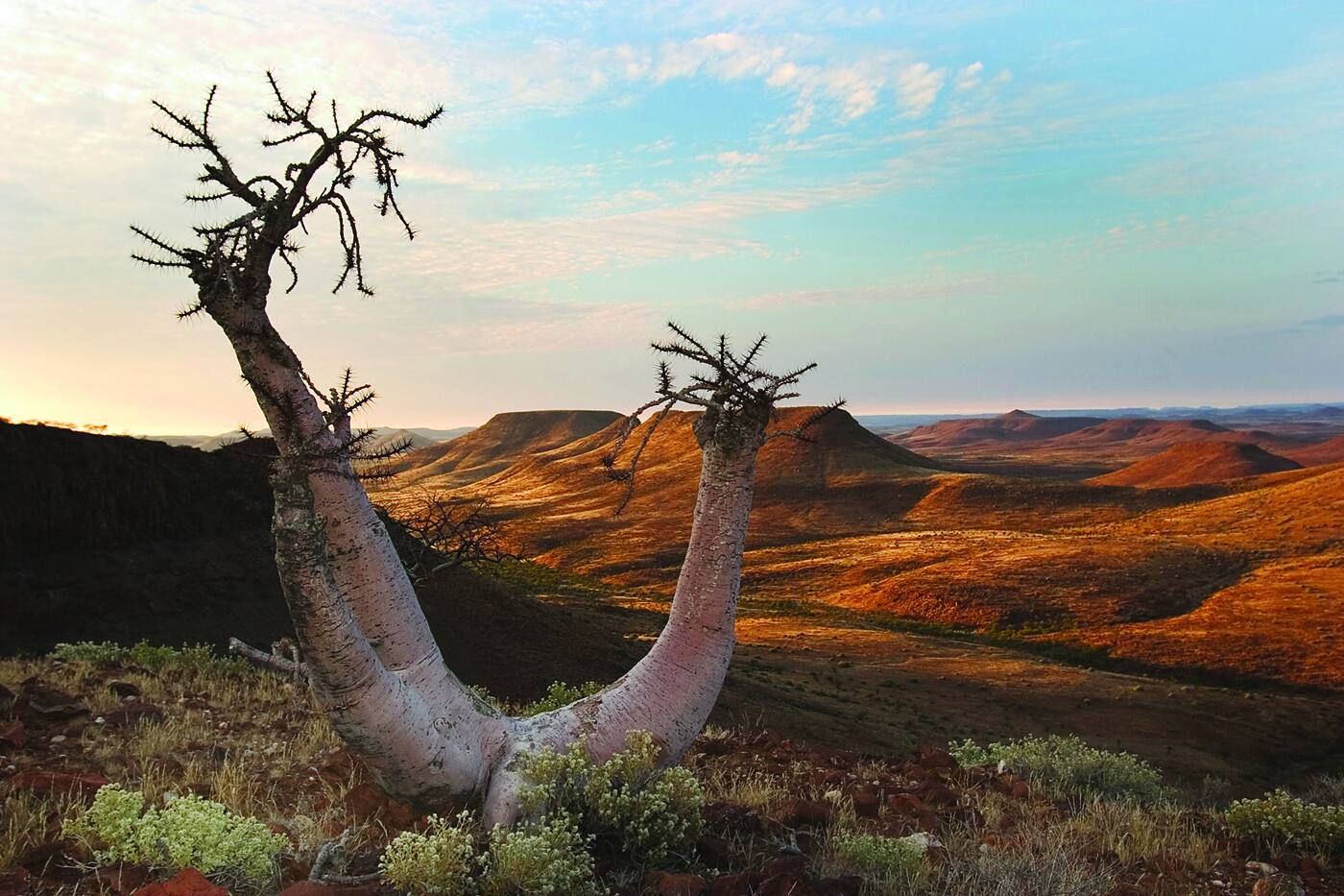 Suundume edasi põhja poole – sõidame Brandbergi, Namiibia kõrgeima mäetipu (2579m), kaudu Damaralandi, ühte hõredaima asustusega ning geoloogiliselt mitmekesiseimasse piirkonda Aafrikas. See karm, kivine keskkond on elupaigaks haruldasele kõrbeelevandile, mustale ninasarvikule ja vabalt hulkuvatele antiloobiliikidele. Külastame Twyfelfonteini pärandipaika, kus bušmanite kogukonnad on umbes 6000 aasta eest maalinud ja graveerinud enam kui 2500 pilti. Lähikonnas avastame Burnt Mountain'it (Põlendmäge), Organ Pipes'e (Orelivilesid) ja Petrified Forest'it (Kivimetsa) – kõik need geoloogilised nähtused on maailma vanimate mandrimassiivide tekke ja arengu poolt kujundatud. Samuti näeme siin velvitšia taime – maa vanimat elavat kõrbetaime. Pärast külaskäiku traditsioonilisse damara külla jätkame sõiduga oma ööbimispaika, mis asub Damaralandi servas. Tänane teekond on 360 kilomeetrit, milleks kulub ligi 6 tundi.