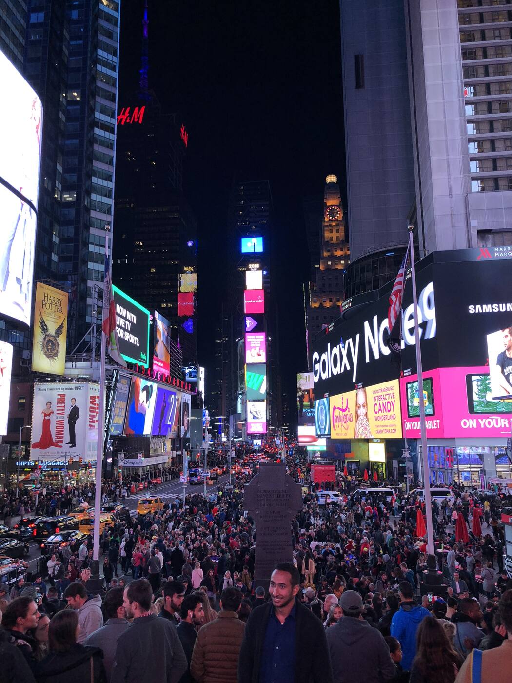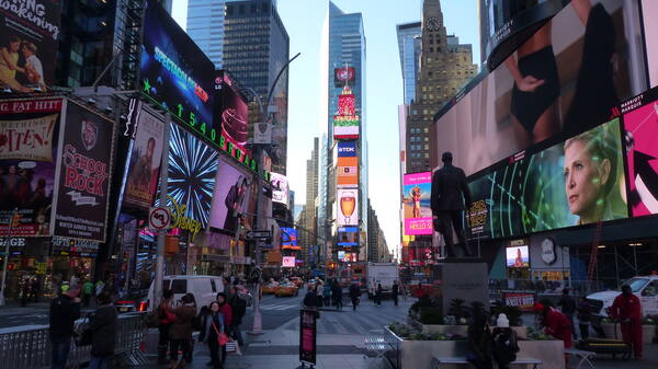 Sõit lennujaamast Manhattanile Times Square'i lähedal asuvasse hotelli. Registreerime end hotelli sisse ning kui vähegi veel särtsu on, siis teeme ühise õhtuse jalutuskäigu Times Square'ile, et kohe esimesel õhtul kogeda üht maailma populaarsemat turismiobjekti, mis oma lõputute reklaamtahvlitega lausa pimestab ega jäta külmaks kedagi. Aastas külastab Times Square'i umbes 50 miljonit inimest.