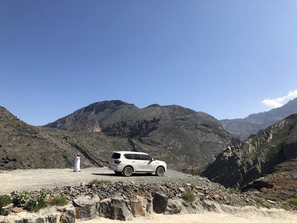 Pärast seda sõidame 4x4 autodega Jebel Shamsi 3009-meetrise tipu suunas. Tee keerutab läbi kaunite orgude ja hüljatud külade. 'Päikese mägi' on nii Omaani kui ka terve Araabia poolsaare kõrgeim punkt. Mäetipus avaneb meile maaliline vaade kanjonile.