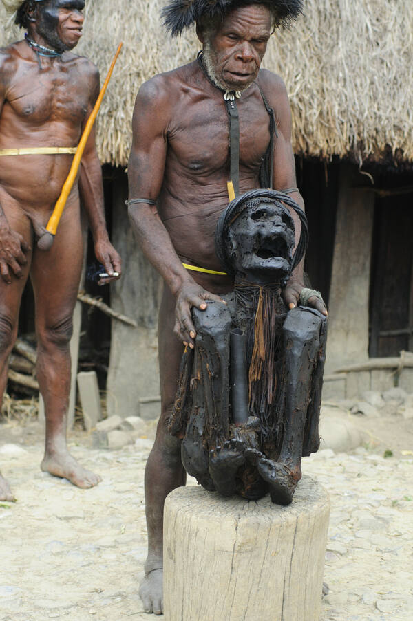 Paapua põlisrahvaste kultuuris on muumiatel oma oluline koht. Vaid mõnes üksikus Lääne Paapua külas on ajalooline esivanemate muumiate eest hoolitsemise traditsioon säilinud. Tihti on see tähtis ülesanne jäänud praeguse külapealiku õlgadele. Ligi 250 aastat tagasi küla valitsenud pealiku mustaks kokku kuivanud muumiat hoitakse spetsiaalses hütis. Pealiku maised jäänused säilitati traditsioonilisel viisil keha suitsetades ja loomarasvadega võides. Selline au sai osaks vaid kõige tähtsamatele külavanematele ning kangelastele dani rahva hulgas. Vähemalt üheksa pealiku järeltulevat põlvkonda on oma esiisa eest hoolt kandnud. Tänapäeval pealikule enam sellist austusväärset mumifitseerimisrituaali ei korraldata. Kristlikud misjonärid ning islamistlikud jutlustajad on hõime juhatanud matmistavade juurde ning mumifitseerimine on kadunud. Siiski mõnes külas soovitakse iidseid traditsioone ja muumiate säilitamise tavasid ka tulevaste põlvkondade jaoks alles hoida. Muumia jaoks korraldatakse teatud tseremooniaid. Muumia rindkere on kaunistatud väärtuslike seakihvadega, peas on kaunistuseks sulgehted ning muumia kannab ka peenisekaitset. Muumia puhkab spetsiaalses muumia jaoks ehitatud õlgkatusega hütis "honai", kus hoitakse aaastaringselt lõket põlevana säilitamaks muumiat kuivana. Vaid vähestele väljavalitud külaelanikele saab osaks au kaitsta ning hoida oma esiisa muumiat. Tihti tuleb neil veeta ka öid koos muumiaga hütis tagamaks seda, et esivanemale ei saaks mingit kahju osaks.