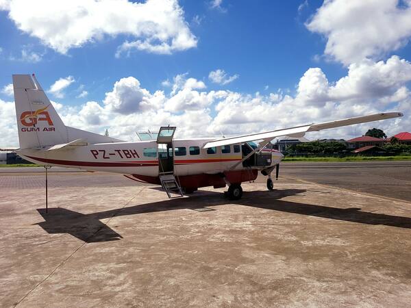 Täna sõidame kohalikule lennuväljale Zorg en Hoop. Pärast hoolikat pagasi kaalumist lendame kohaliku väikese lennukiga Palumeusse.