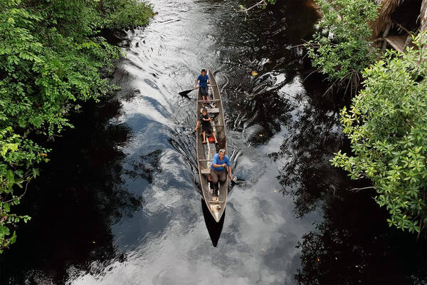 Teeme paadiretke tutvumaks kohaliku taime ja loomariigiga. Loodame kohata madusid ja kaimaneid. Valgusvihtudes peegelduvad ööloomade silmad.