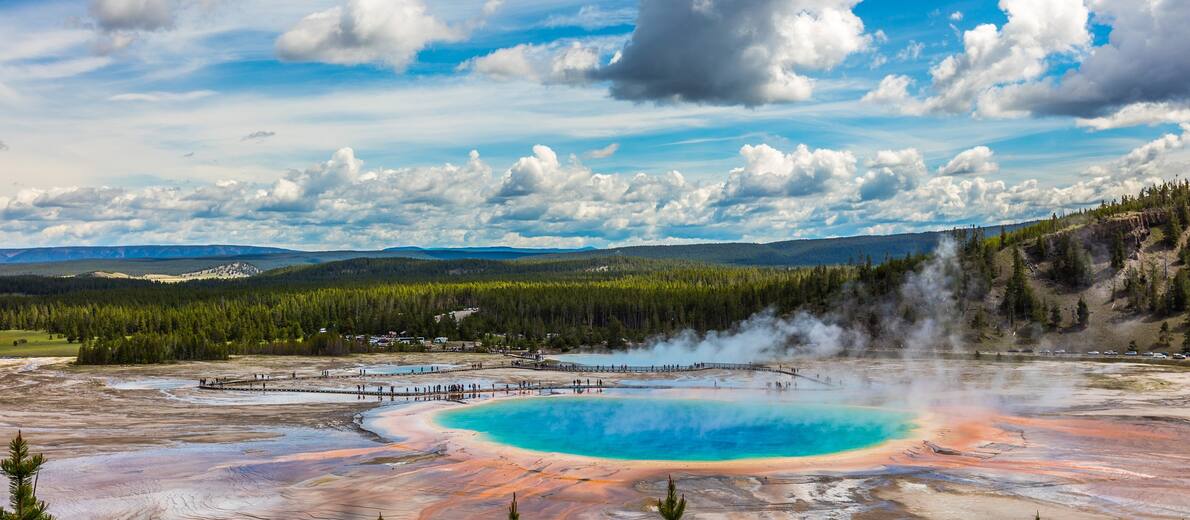 Pärastlõunal saabume Yellowstone'i rahvusparki, mis oli kõige esimene rahvuspark maailmas. Wyomingu osariigis asuv park on tuntud geotermaalse aktiivsuse, muljetavaldavate maastike ja küllusliku eluslooduse poolest. Veedame Yellowstone'i rahvuspargis mitu päeva, mille jooksul jõuame avastada mitmeid kuulsaid paiku — Grand Prismatic Spring, Boiling River, Grand Canyon of Yellowstone, Lamar Valley, Old Faithful, Fountain Paint Pot, Black Sand Basin ja Upper Geyser Basin. Täpne marsruut ja külastatavad kohad selguvad koha peal, sest ligipääsetavus sõltub nii ilmast kui teedeolust.