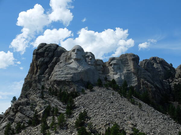 Seejärel näeme lähemalt Mount Rushmore'i rahvusmemoriaali, kus kaljumäe nõlva on raiutud nelja Ameerika presidendi portreed.