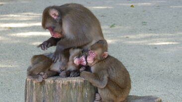 Ajal, kui meie ühe sellise looduslikult köetava soojavee basseini juurde jõudsime, oli kevadpäike lume juba ammu ära sulatanud. Ometi oli looduslikust allikast tekkinud selgeveeline tiigike nüüdki makaakide meelispaik. Suur osa hallikarvalistest punasenäolistest ahvidest istus kümbluse eel või ootel tiigi kaldal. Nendel, kes parajasti veest tulnud, oli märg tilkuv kasukas keha ligi liibunud. Seetõttu näisid nad kuidagi kõhnad ja õnnetud. Aga kogu nende olekust kiirgas sügavat rahulolu. Vees olevatest ahvidest mõned ujusid, mõned kõndisid tiigi madalamas osas ringi, jalad põhjas. Rinnuni vees, seirasid nad hoolikalt veepinda enda ees. Leidnud enda meelest mõne söödava palakese, uurisid nad seda hoolega oma tumedate sõrmede vahel. Kui pala tundus söödav, prooviti seda hamba all. Nähes midagi uudishimu äratavat vee all, võis makaak kõhklematult sukelduda. Ta ujus osavate ja sujuvate liigutustega tiigi põhja ning tõi huvi pakkunud eseme veepinnale.