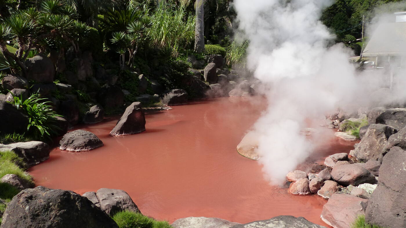 Süsimustad kanamunad küpsevad väävliaurudes. Kolmandal päeval tõusime 1412 meetri kõrguse Kanmurigatake mäe jalamile mõne kilomeetri kaugusel meie kämpingust. Tahtsime näha paika, mille nimi jaapani keeles Jigoku-dani ja eesti keeles Põrguorg. Lähenedes lõi eemalt ninna mädamuna lehka. Kivide vahelt kerkis aurusambaid. Meie ees oli ammuse vulkaani kraater, kust tänaseni toimimas fumaroole ehk väävliaurude koldeid. Fumaroolide vahelt kulges hästi tähistatud ja turvaline õpperada. Õpperajal sai lähedalt uurida kuumaveeallikaid ja avausi, kust väävliaurud maapinnale tulid. Kuni põlvekõrgused susiseva väävliauru väljatuleku paigad kivide vahel olid kollast värvi. Põhjuseks jahenemisega tahkestunud ja kristalliseerunud väävel.