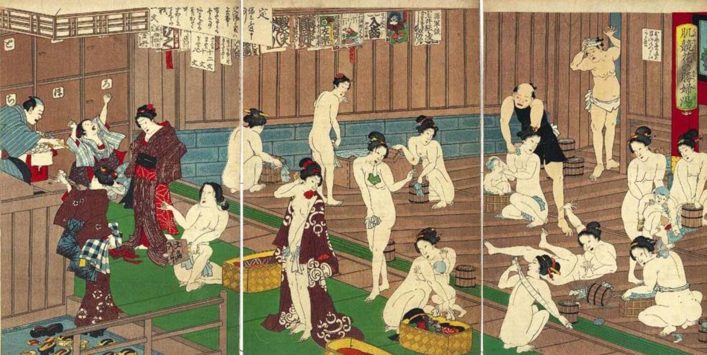 Nara ajastu (710-794. a.) tavakodanike pesemisasutused olid tänapäevastest täiesti erinevad. Need olid madalad, auru täis asutused, kus enda käeulatusest kaugemale ei näinud. Mõnel pesemisasutusel oli siis natuke kahtlane kuulsus, sest seal käisid mehed ja naised koos ja paksu auru sees sai salajas toimetada. Pesunaised pesid selja puhtaks...