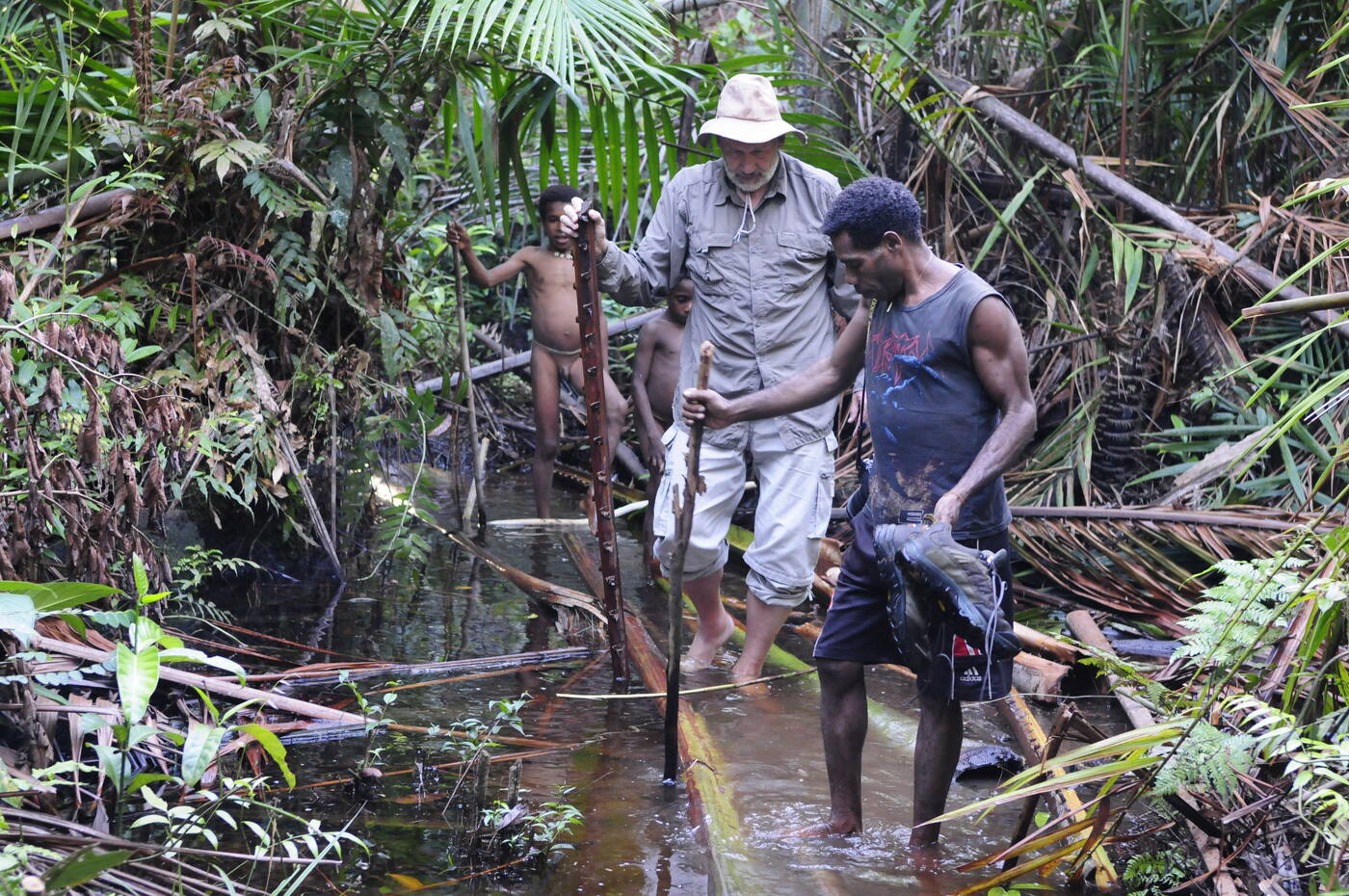Juba esimesel kõndimise päeval saab meile selgeks, et rännak tuleb räsiv. Kujutlege vesist soometsa, kus näha üksnes loomade rajad. Millegipärast valivad meie teejuhid endastmõistetavalt nende seast ühe, mis olevat inimrada. Mülkaid läbitakse pikki võsast lõigatud latte ja jõgesid ületatakse palki mööda, mis langetatud risti üle jõe. Tunni pärast on me riided niiskusest ja higist läbimärjad. Lonksame aeg-ajalt väikeste sõõmudega pudelivett, mis maitseb paremini kui Eestis sõpradega rüübatud viskilonks. Algul tundub, et varem või hiljem libastun kindla peale mõnel palgil, kui järjekordset jõge ületan. Kuid arusaam, et sellega oleks mu reis ka arvatavasti lõppenud, sunnib end äärmiselt kokku võtma. Reisi lõpuks on küll parem jalg väljaväänamisest paistes ja sääred rägas ragistamisest vorbilised, kuid jõgede ületamisel ei libastu ma kordagi.