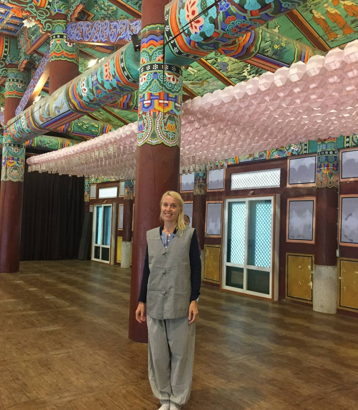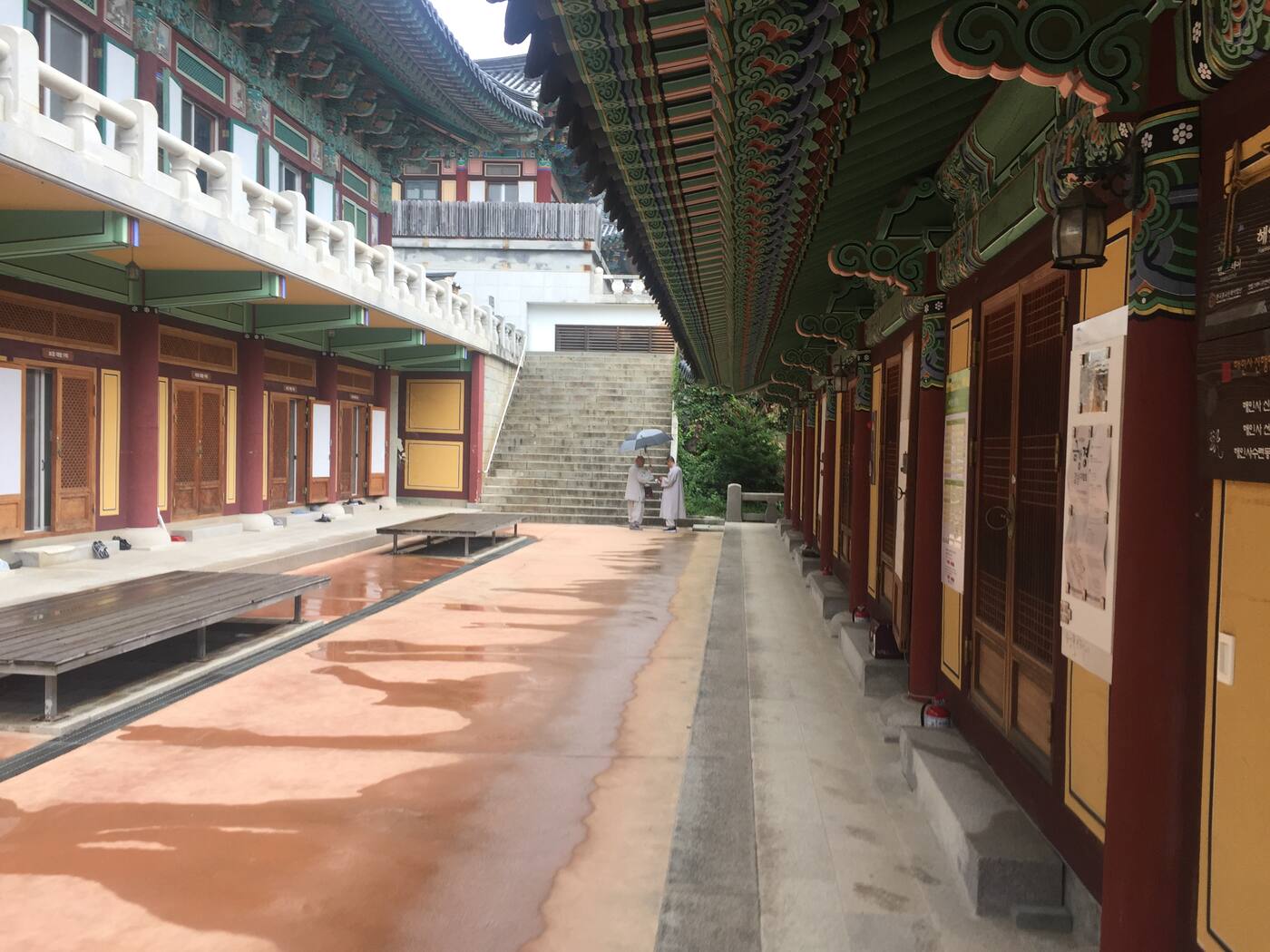 Välismaalasena templis viibimine on ühteaegu võimsaks inspiratsiooniks kui ka suurepäraseks viisiks kogeda ehedat Korea kultuuri pisut sügavamalt. Templi külastamise aeg langeb septembrisse, mil suve rohelised toonid ei ole veel andnud teed sügisesele värvikirevusele. Juba esimest silda ületades on tunda kuidas puuvõrade rahulik roheline võlvkaar ja tasane vihmasabin sobivad iidse pühapaiga olemusega. Natuke heitlen iseendaga enne templisse minekut, et kas mitte-budist ei tundu sellises võimsas pühapaigas kummalise võõrkehana. Teisalt võib asjasse mittepühendunu jaoks olla iidsete rituaalide ja pühade tseremooniate läbitegemine hirmuäratav või pentsik. Koreas on just selliste võhikute ent uudishimulike jaoks, kes soovivad templi sisemise elu kohta pisut rohkem teadmisi saada, korraldatud templis viibimise programmid. Programm sai kõva tõuke 2002. aastal kui Koreas toimus jalgpalli World Cup ning siis hakkas ka Korea valitsus toetama mõtet pakkuda väliskülalistele alternatiivseid ööbimisvõimalusi. Selle tulemusena kujunes Korea kultuuri kogemust võimaldav templikülastus programm, milles osalejad saavad üürikeseks eemalduda materiaalse kasumi saamisele keskendunud hektilisest argipäevast ning nautida pisukest sisekaemust.