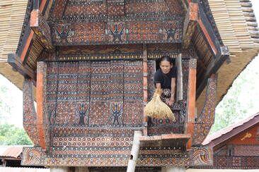 Ta juhatas meid otseteed ühe tongkonani juurde. Rahvas sumises selle all lustlikult nagu mesilaspere. Lapsed jooksid ja kilkasid, naised jõid mõnusasti kudrutades kohvi. Yusuf utsitas meid mööda kitsast õõtsuvat redelit majja ronima. Tongkonani ukseavast sisse saamiseks tuli üheaegselt kõvasti kummarduda ja samas põlved lõua alla tõmmata. Lävepakk oli kõrge, samas ukseava hästi madal. Pressisime ennast avast läbi ja koperdasime mänguasjade ning madratsite otsa. Tongkonanis oli kolm n-ö tuba. Perenaine viipas meid üle mängivate laste lõunapoolsemasse ruumi.Ta toetas ennast mõnusasti nööriga kokkuseotud vatitekihunnikust kookonile, patsutas sellele pehmelt ja ütles: „Mamma, vaata, sulle tulid külalised. Nad teevad nüüd pilti.“ Seejärel sirutas perenaine meie poole tikitud kotikese. Kogu maailmas üheselt mõistetav žest andis märku, kuidas saab kõige paremini lahkunule viimast austust avaldada. Igaüks pistis kotikesse kokkuvolditult 30 000 ruupia (paari euro) suuruse ohvrianni.