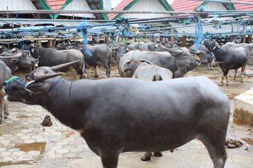 Mõned pereliikmed olid küll sündsalt tumedasse riietunud, aga matustele omast kurbust polnud kellegi näoilmes märgata. Külaplatsi keskele vuras veoauto veoauto järel, kaasas kastitäis edevalt riides matusekülalisi, kes valgusid ümbritsevate tongkonanide ja riisiaitade alla. Järgmise veoauto kastis saabus kohale üks suursugune pühvel, tutid sarvede küljes.