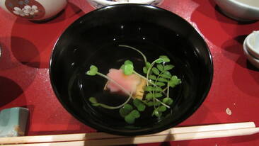 Ainukese erandina oli uue aasta esimesel kolmel päeval lubatud keeta zōni`t. See samurai ajastust pärit selge puljongiga või misoga maitsestatud supp, mille üheks peamiseks koostisosaks on mochi (tambitud riisist pätsike), lisaks veel juurviljad ja mereannid, nägi Sadako variatsoonis hõrk välja. Lauale tuues jäi Sadako jaapanipäraselt üdini tagasihoidlikuks: kuchini awanai kamoshirenai kedo tabetemite! (see ilmselt ei ole teile suupärane aga proovige). Supi värviks oli Sadako kasutanud porgandi lilli ja mizuna ning magusherne erkrohelust. Yuzu (jaapani tsitruseline) koore killud lisasid värske aromaatse varjundi. Meie tütar Melissa, kelle jaoks on mochi alati olnud sünonüümiks sõnaga „maitsev“, haaras pärast esimest „itadakimasu“ (lihtne tänusõna millega hakatakse vastu võtma seda mida pakub meile loodus) kõhklemata pulgad pihku, hammustas mochit ja ümises mõnuledes „oishii“ (maitsev).